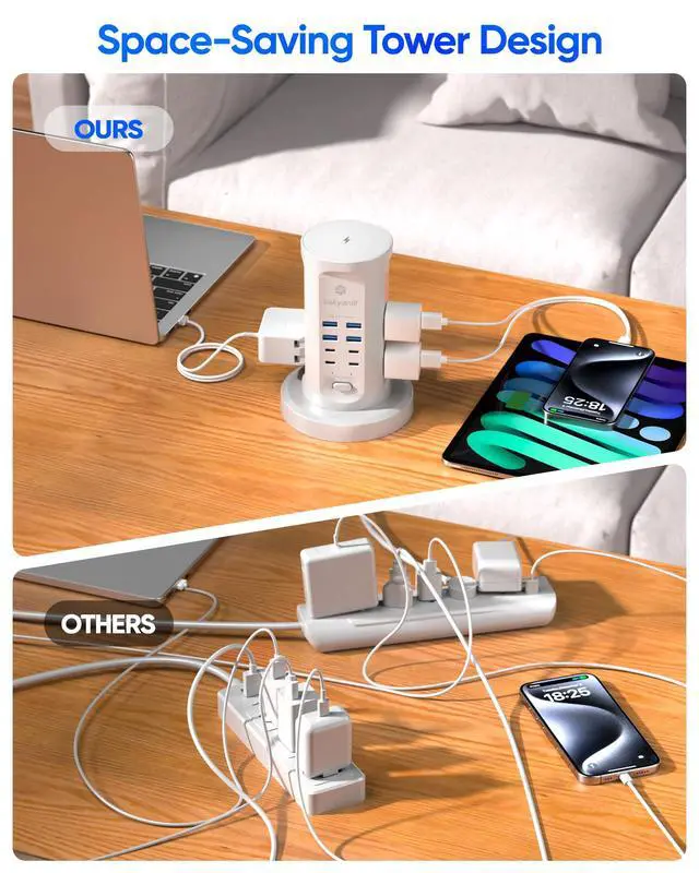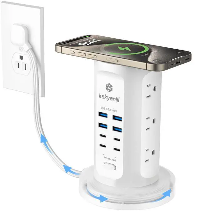 17-in-1 Charging Hub | 1080J Surge Protection | Space-Saving Design for Home & Office* Revolutionize your charging setup with the Kakyanill Power Strip Towera sleek, all-in-one solution designed for tech-heavy lifestyles. Whether youre in a cramped dorm, a busy office, or a minimalist home, this tower delivers unmatched versatility and safety.