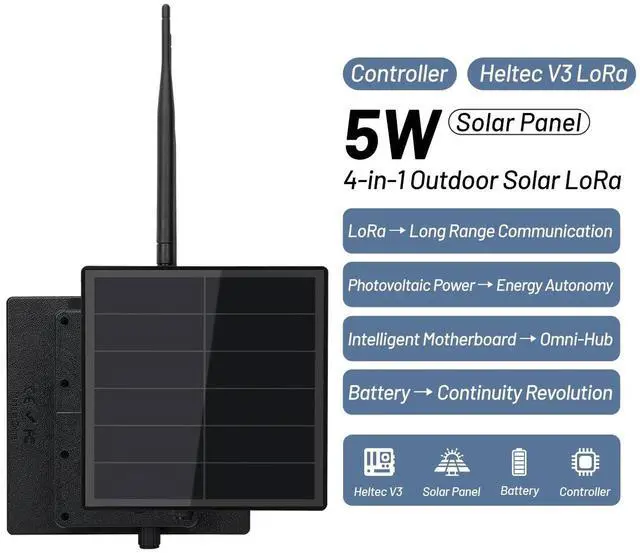 • D5L Solar Power Node With Heltec LoRa32 V3 Board 5W Solar Panel Powered low power SX1262 Meshtastic Solar Node