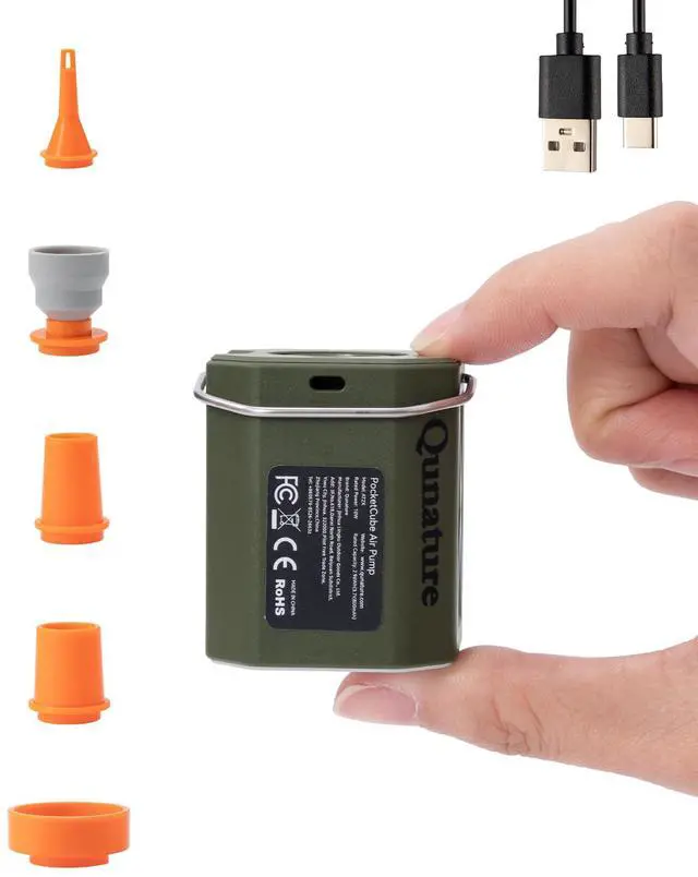 5 Nozzles for Wide Compatibility: Includes 5 specialized nozzles to fit most inflatables: air mattresses, pool floats, vacuum storage bags, inflatable toys, and sleeping pads. This portable air pump for inflatables is versatile for home, travel, and outdoor use. (Note: Not suitable for SUP, balloons, sports balls, car/bike tires. Avoid continuous use over 10 minutes.)