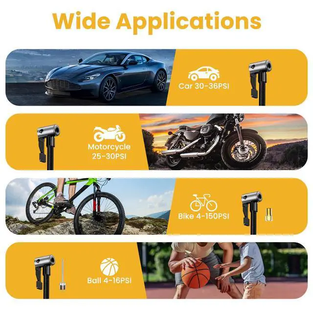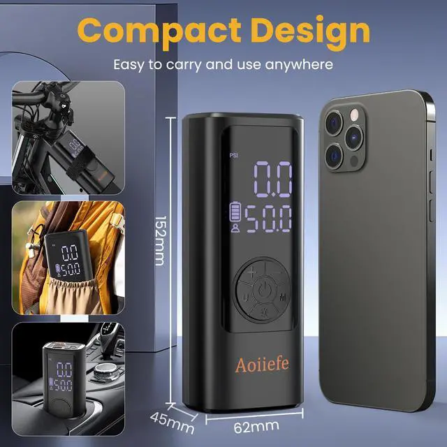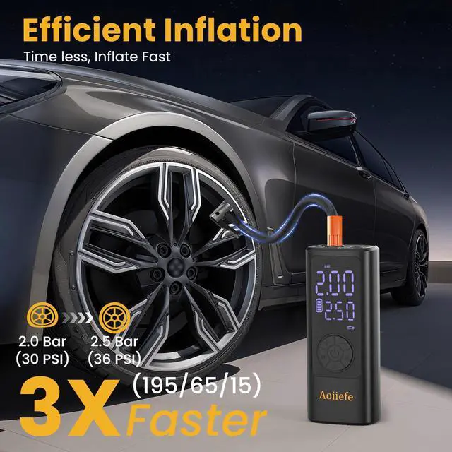 Fast & Cordless Inflation This portable tire inflator delivers rapid air compression for car tires, bikes, and sports equipment. No cords neededpowered by a rechargeable lithium battery with type-C.