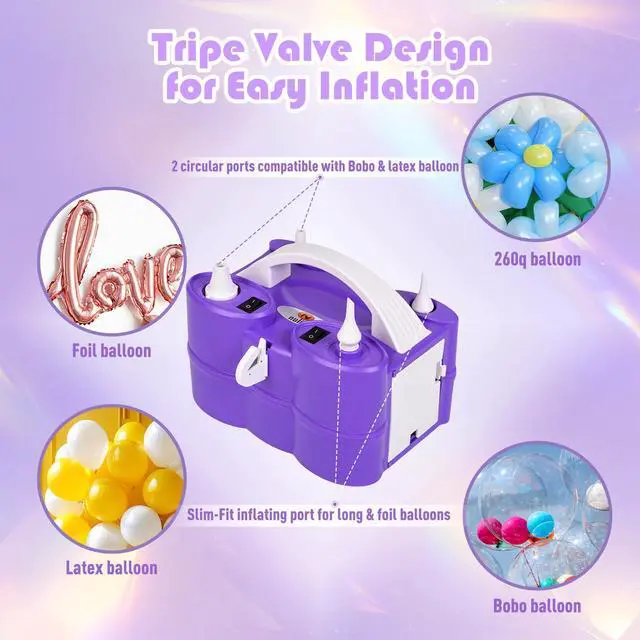 Compact and portable: Balloon air pump is designed to be lightweight, and equipped with a convenient carry handle. This balloon pump is easy to transport and store. It can be used at birthday parties, weddings, baby shower, and other balloon decorations, pool party, water-fun party.