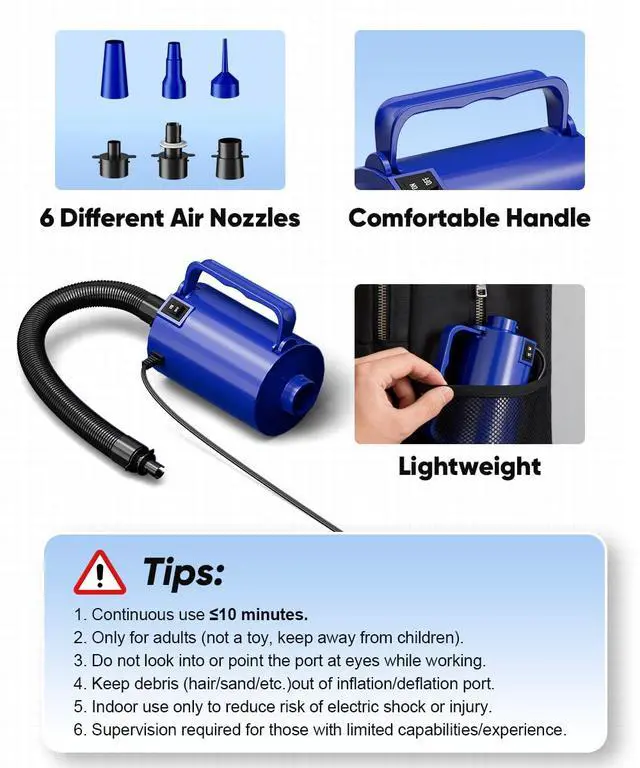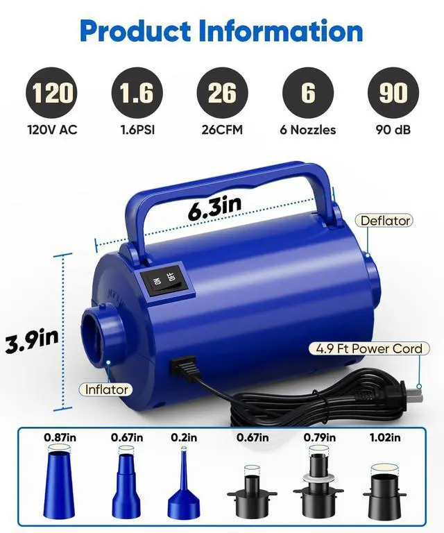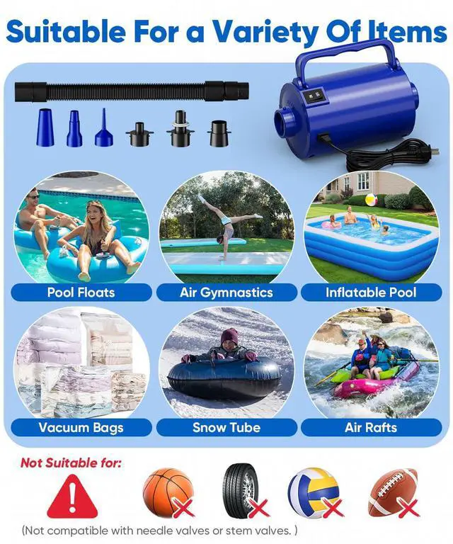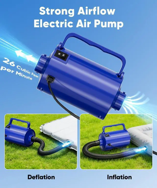 Tired of manual pumping or struggling with weak pumps? The Lotspasie Electric Air Pump is designed to take the effort out of inflating and deflating your essentials. With its powerful 320W motor, it delivers a strong 26 CFM airflow to get your items ready in no time, whether you're setting up a guest room, preparing for a pool party, or packing for a camping adventure.