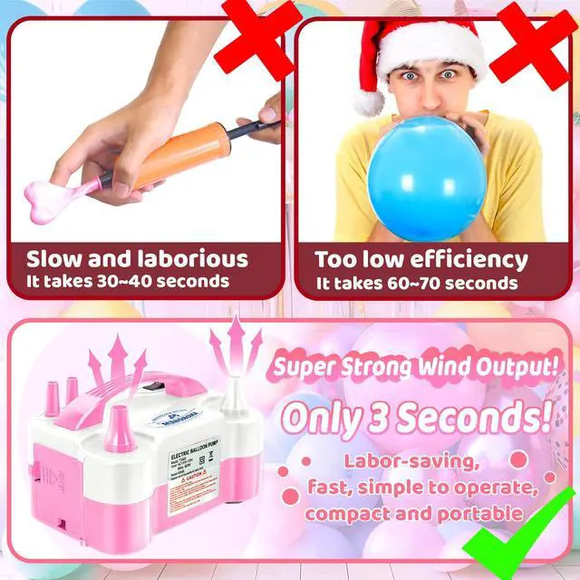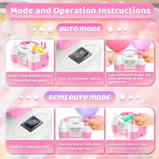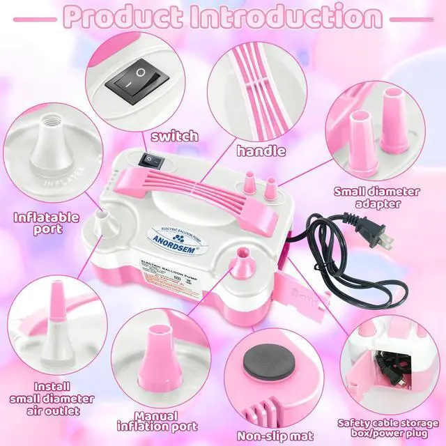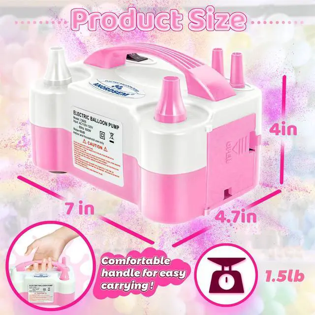 Electric balloon blower machine is an automated tool designed to enhance the party atmosphere, it can produce hydrogen or helium balloons quickly and continuously, easily creating a fantastic party scene. It mainly solves the time-consuming and inefficient problem of manually blowing up balloons and makes party preparation easier and more enjoyable.