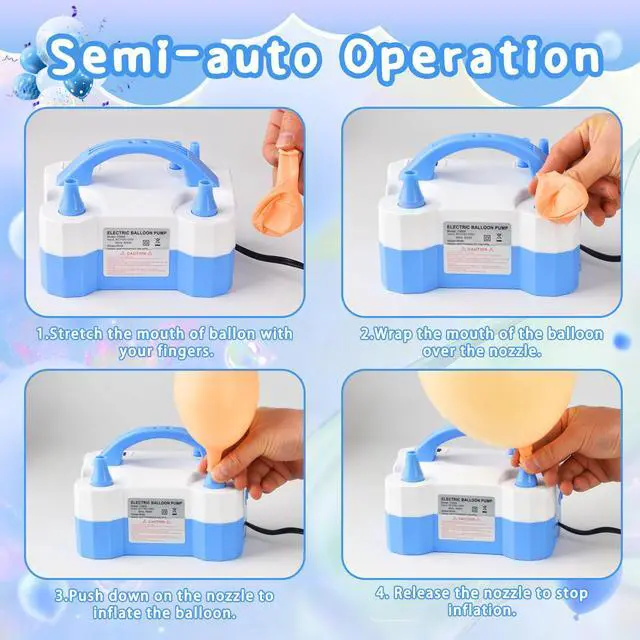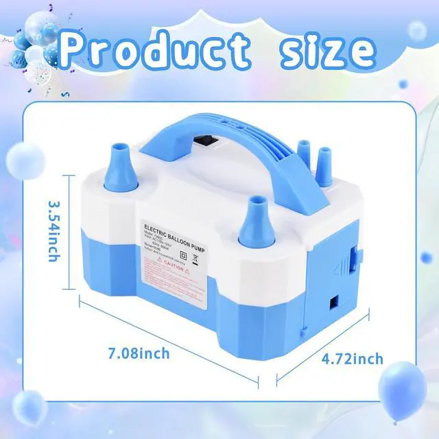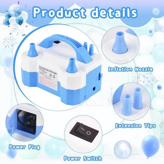 Dual nozzle design: The balloon pump electric features two powerful nozzles that can inflate balloons simultaneously, doubling efficiency and reducing balloon preparation time for any events and parties.