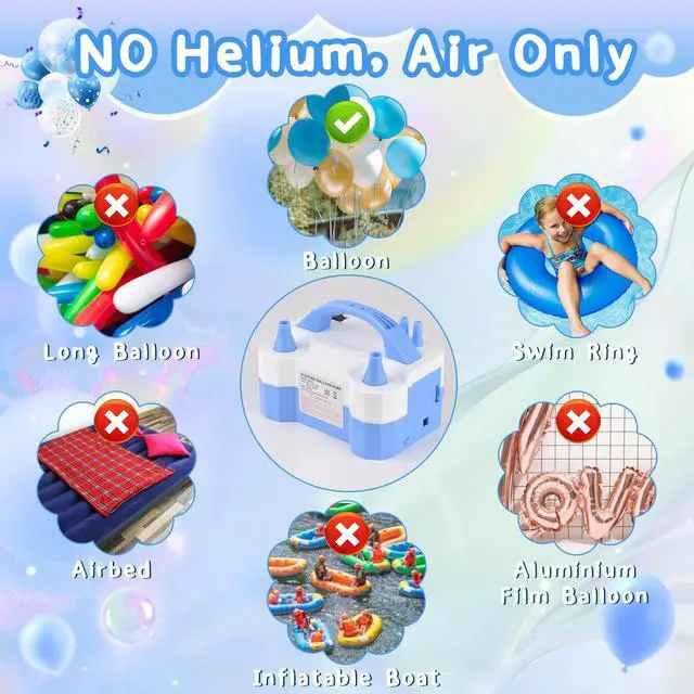 Light weight and portable design. Easily create a warm atmosphere. This portable air compressors balloon inflator is commonly used in some.Our air balloon pump is for regular air only which means inflated balloons are not going to float.