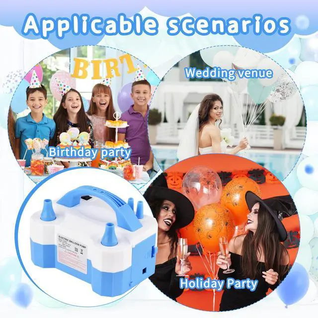 Portable and compact design: Electric balloon pump is deigned for lightweight, with an ergonomic handle. This balloon pump is created and designed for on the go party planners and event organizers, fitting easily into carrying bag and lugguage for travel.