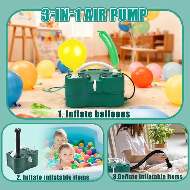 Balloon Pump Electric, Portable 3-in-1 Air Pump Inflator Blower Machine for Latex 260q Foil All Balloons & Quick-Fill Inflation and Deflation for Air Mattress, Inflatables Pool, Airbeds, Floats