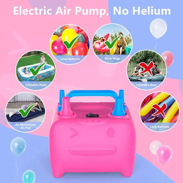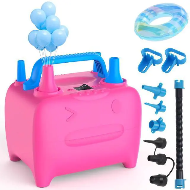 Balloon Pump Electric, Multipurpose Balloon Inflator Electric Air Pump, Portable Dual Nozzle Balloons Air Pump Electric 600W Blow Machine for Party Decoration, Pink