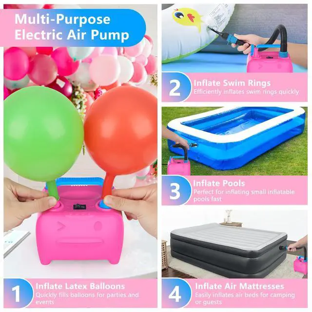Multi-Use Balloon Pump: This versatile electric balloon pump comes with multiple nozzle extensions, perfect for inflating latex balloons, pool floats, air mattresses, and inflatable pools. Ideal for various inflation needs in different settings. Working voltage: 110v - 120v