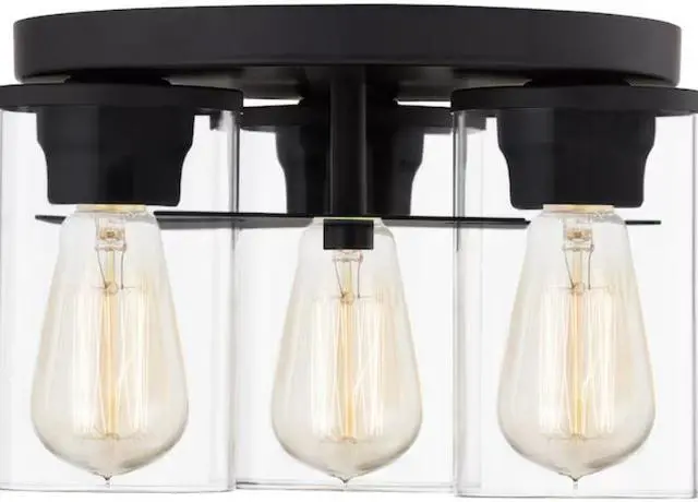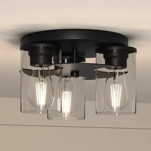 The matte black finish flush mount light offers a contemporary look