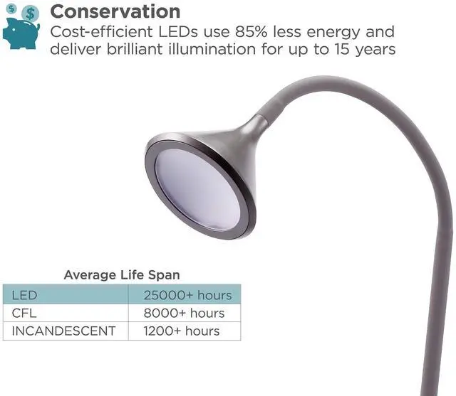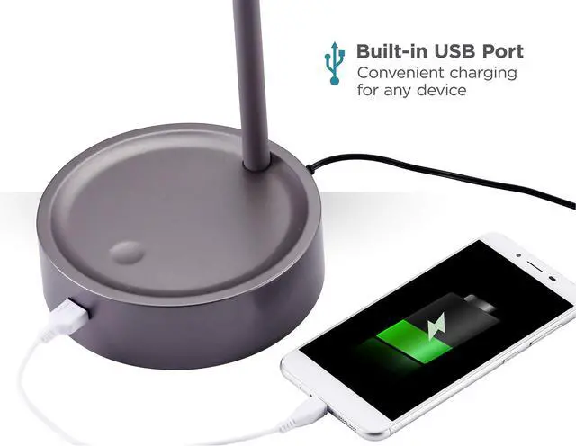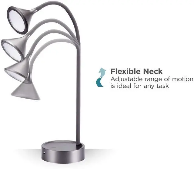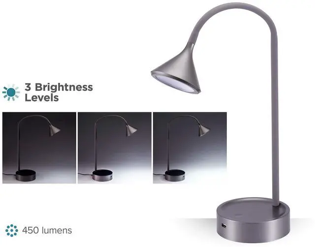 Flexible Gooseneck LED Desk Lamp with USB Port Gray VLED1812GRBD