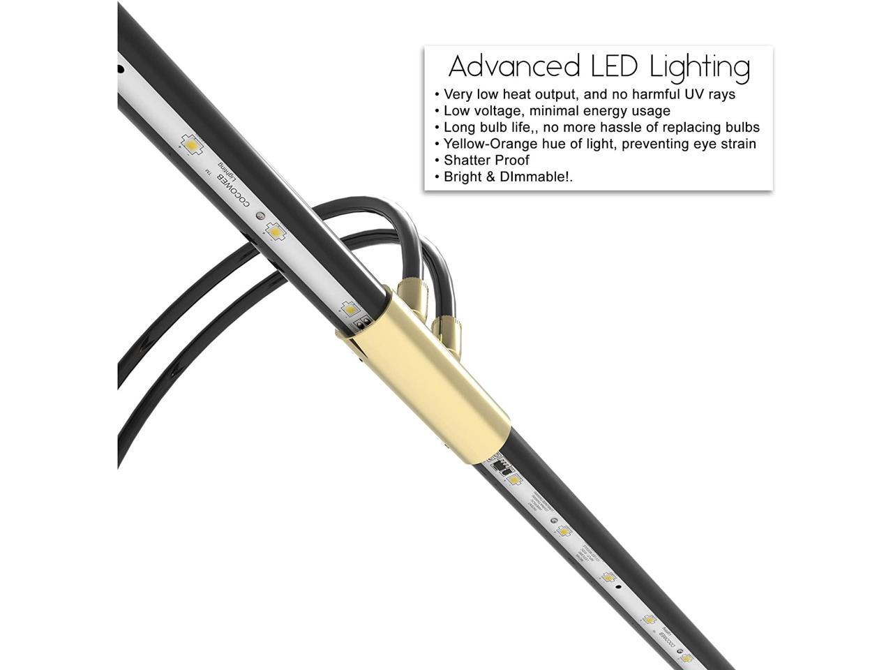 Cocoweb 22" LED Grand Piano Light with Black and Brass Accents. Full Range Dimmer, LED Light, Adjustable Shades and Height