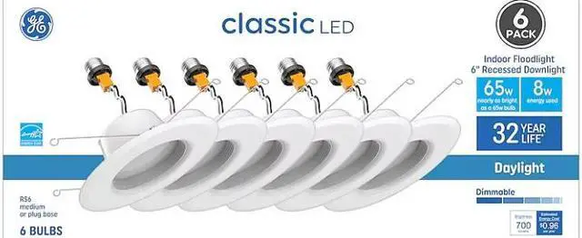 GE Classic White 5-in or 6-in 700-Lumen Daylight Round Dimmable LED Canned Damp Rated Recessed Downlight (6-Pack) Item #1102464 #93131414