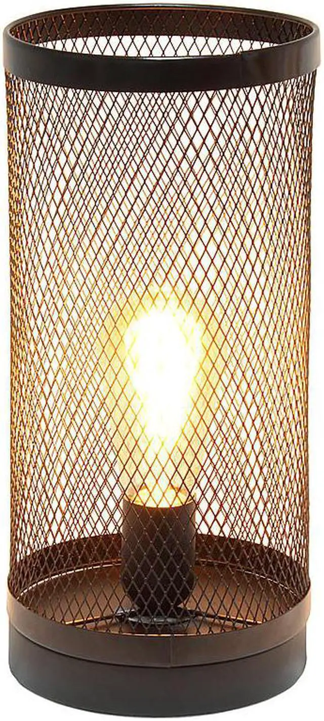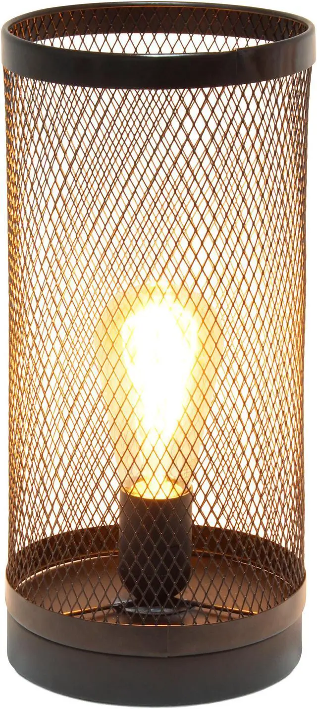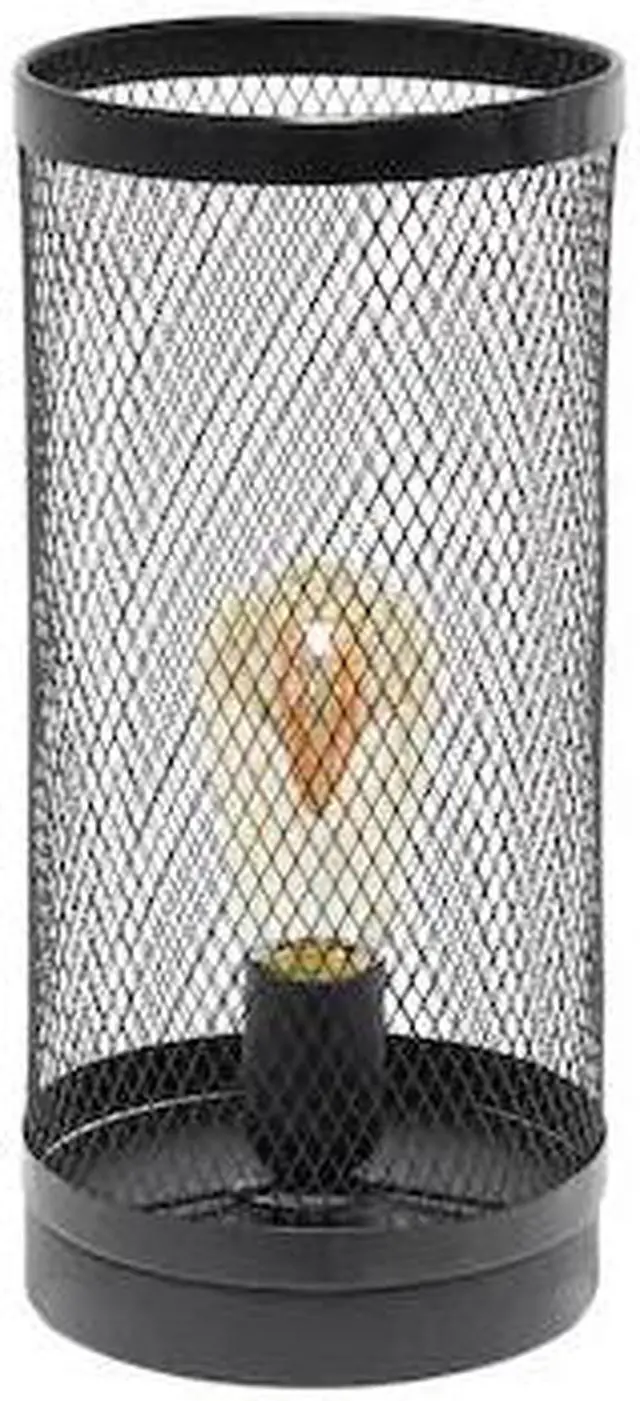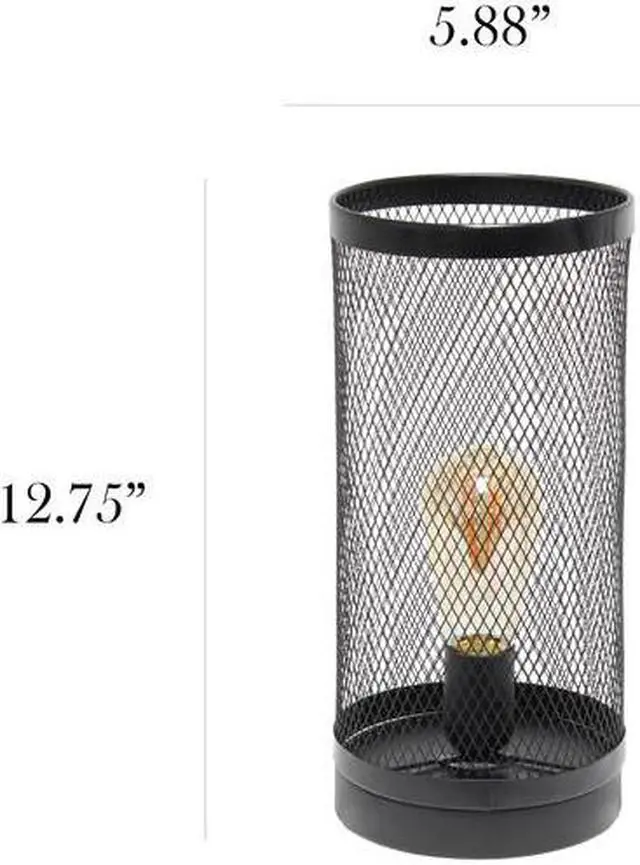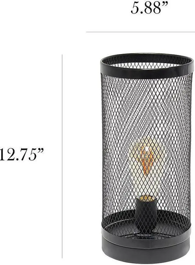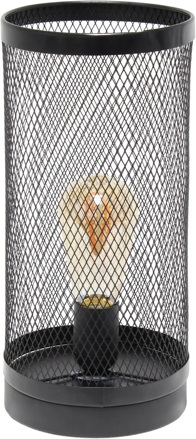 Simple Designs Black Mesh Cylindrical Steel Table Lamp