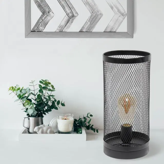 This metal table lamp with mesh shade will add ambiance and style to any room in your home! With a simple, lattice cut out design this lamp illuminates beautifully and is the perfect size for your bedroom, living area, office, kid's room or college dorm. Undoubtedly the perfect accent piece to your home, this industrial lamp will not disappoint! **HELPFUL TIP: To get the complete vintage look, we recommend using a decorative Edison/Vintage bulb (not included). **