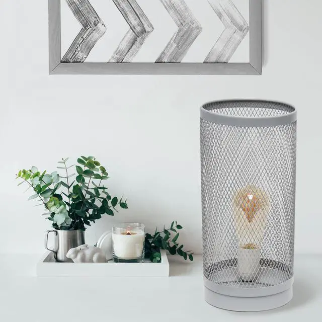 This metal table lamp with mesh shade will add ambiance and style to any room in your home! With a simple, lattice cut out design this lamp illuminates beautifully and is the perfect size for your bedroom, living area, office, kid's room or college dorm. Undoubtedly the perfect accent piece to your home, this industrial lamp will not disappoint! **HELPFUL TIP: To get the complete vintage look, we recommend using a decorative Edison/Vintage bulb (not included). **