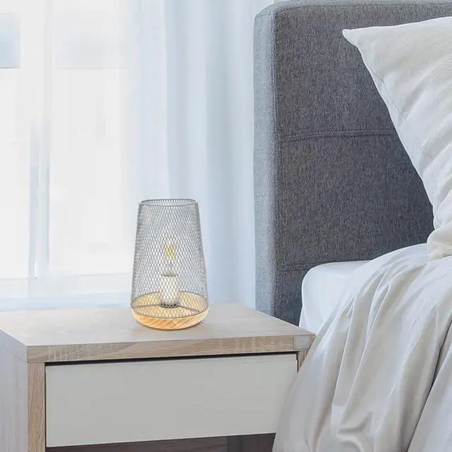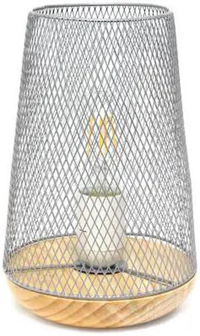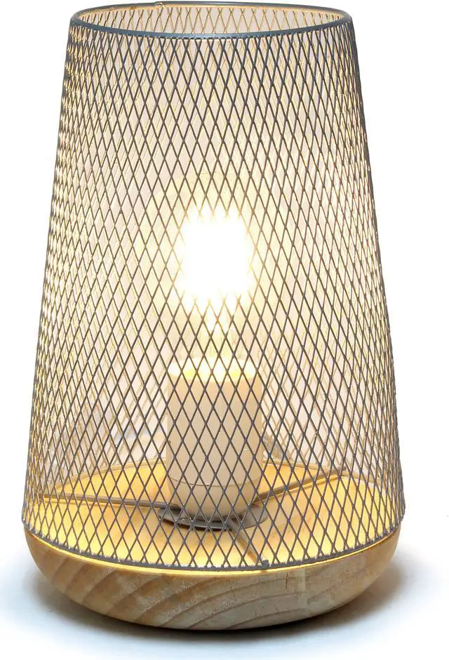 This metal table lamp with mesh shade will add ambiance and style to any room in your home! With a simple, lattice cut out design and natural wood base this lamp illuminates beautifully. Undoubtedly the perfect accent piece to your home, this industrial lamp will not disappoint! **HELPFUL TIP: To get the complete vintage look, we recommend using a decorative Edison/Vintage bulb (not included). **