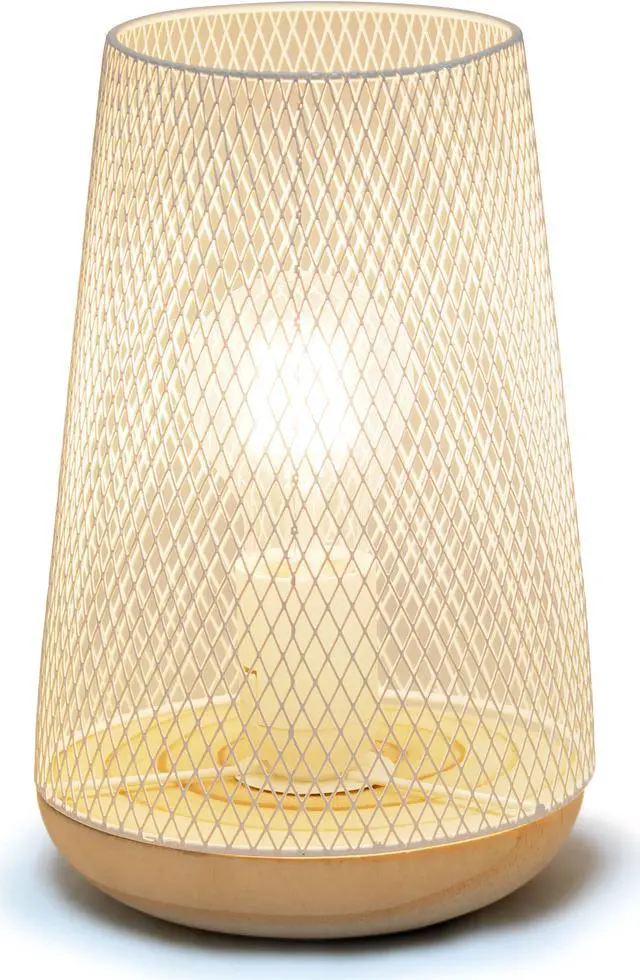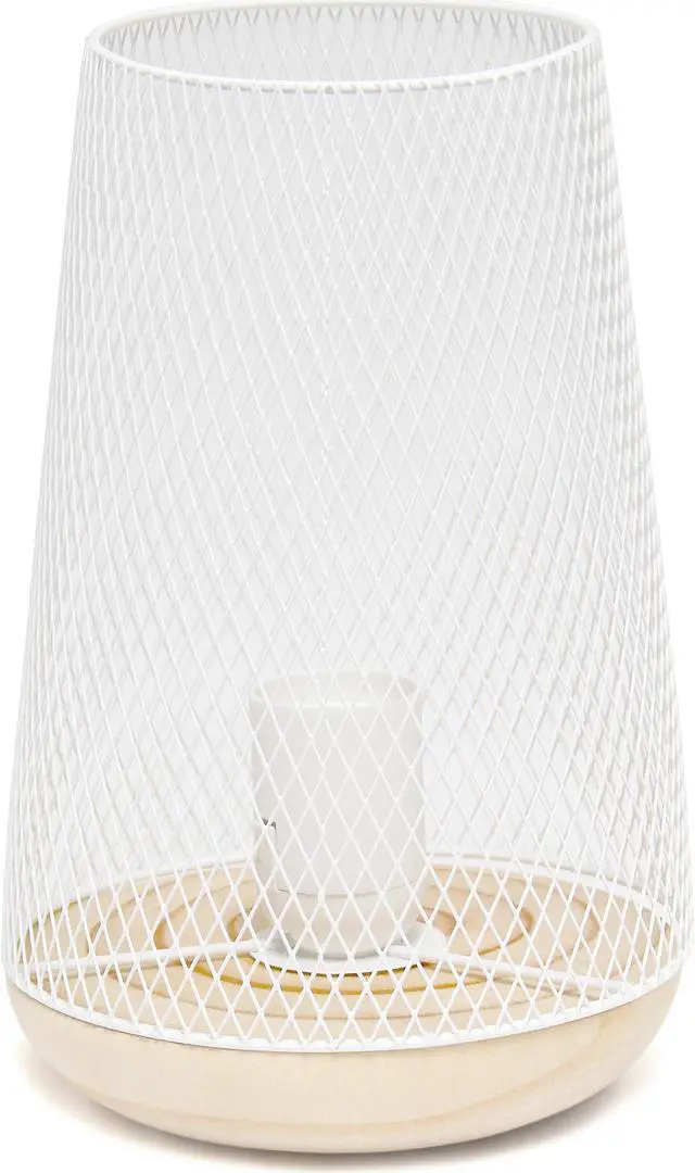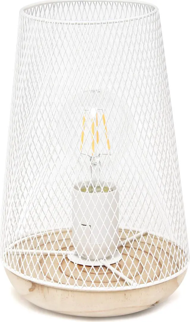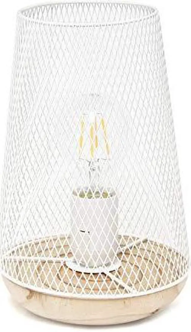 This metal table lamp with mesh shade will add ambiance and style to any room in your home! With a simple, lattice cut out design and natural wood base this lamp illuminates beautifully. Undoubtedly the perfect accent piece to your home, this industrial lamp will not disappoint! **HELPFUL TIP: To get the complete vintage look, we recommend using a decorative Edison/Vintage bulb (not included). **