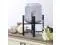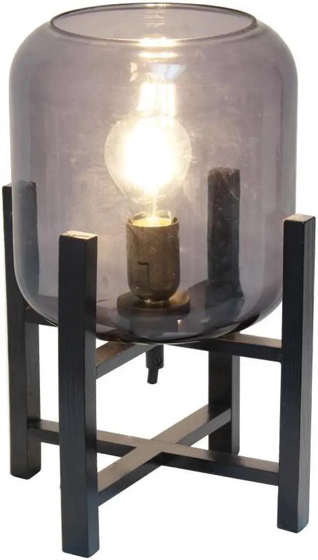 This contemporary lamp elevates the glass shade on a four-arm wood stand finished in black. The curvy cylindrical smokey glass shade combined with the geometric wood base creates the perfect ensemble. Place on a desk, nightstand, dresser or table for a modest, refined look in fashion lighting.