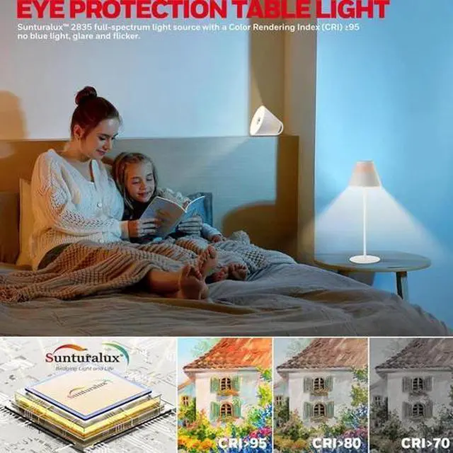 - [Eye Protection Table Light]Honeywell desk lamp features a full-spectrum light source with a Color Rendering Index (CRI) =95, ensuring a comfortable environment for your eyes. This cordless lamps features a circular light source design, providing 360° uniform lighting without any dead angles. With built-in Sunturalux full-spectrum light source, it ensures no flickering, zero harsh glare, and emits no UV or IR radiation, ensuring a strain-free visual experience