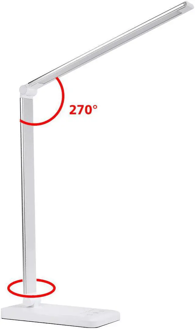 Features:-- Made of ABS and PC, lightweight, durable and smooth texture touchscreen feeling.-- Elegant slim folding design,adjustable head tilts up to 180°and arm tilts up to 270°, which allows you to easily adjust the light to the perfect angle for your convenience.-- 3 light color temperature and brightness ensure comfortable reading and writing.-- Soft and no glare light maximum protect your eyes. It can help you work or study more efficiently and comfortably. Specification:Material: ABS + PC + Aluminum alloyItem color: SilverLed quantity: 26pcs LEDMax power: 10W3 adjustable color temperature: White light, warm light, warm white lightLifespan: 50000 hoursSwitch: Touch SwitchInput voltage: AC 100-240VWorking voltage: 9V/1.2AProduct Size: 19x11x36cmPackage includes:1 x Desk Lamp (with USB cable)Plug Type:Does Not Support Charging.Note:1. Please allow 0.5-1cm differences due to manual measurement.2. Due to the light and screen difference, the item's color may be slightly different from the pictures.