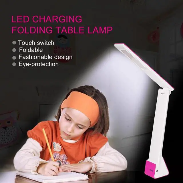 Features: LED charging folding table lamp Touch switch Foldable PC cover Fashionable design Eye-protection Specifications: Brand name: Color temperature: 2700-6500K Working current: 850mA max Voltage: DC 5V Power: 4W max Open height: 264-460 (min- max) Folded size: 50x61x264mm Color: silver gray, rose red Package includes: 1 x LED charging folding table lamp 1 x USB cable 1 x Manual