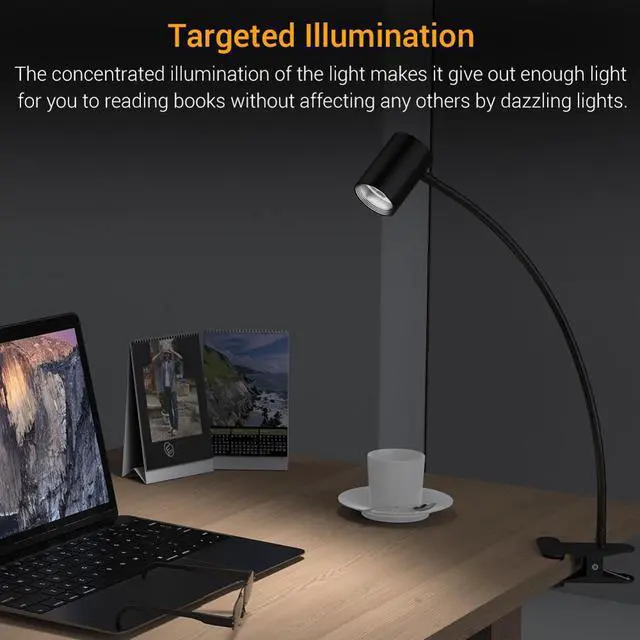 360° Flexible GooseneckDurable flexible gooseneck allows you to adjust your clip light with ease and to direct the light wherever you want. Light up any dim space by clip-on the lamp.