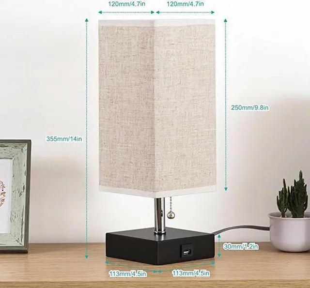 Modern Design Bedside Table Lamps with USB Charging Port Wood Base Fabric Square Nightstand Table Light Bedroom Study Lighting