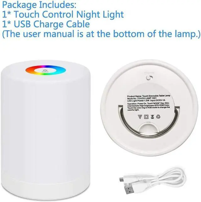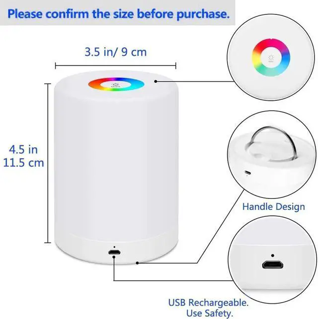 Night light LED Intelligent Bedside Table lamp Tactile Control Controllable Rechargeable USB Portable RGB Color Change For Children Room