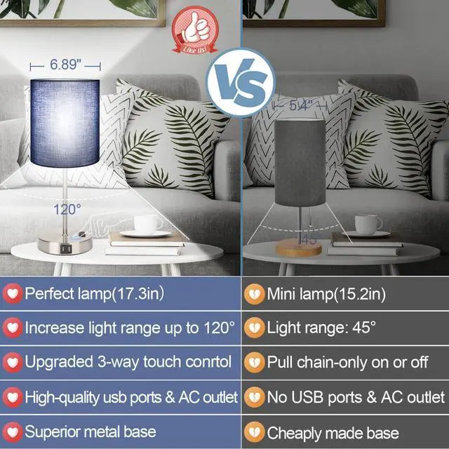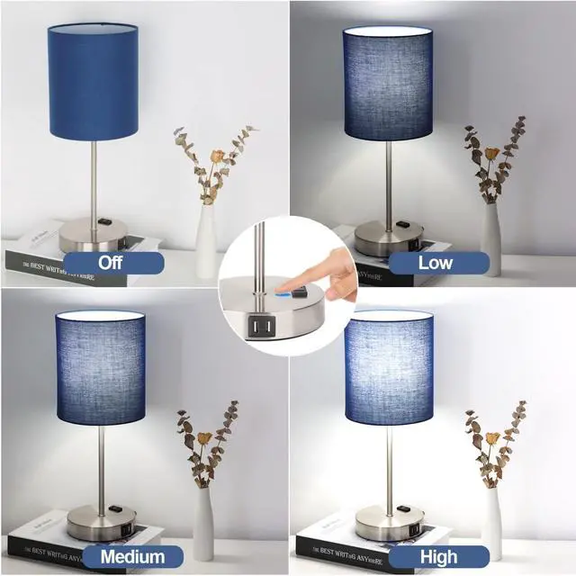 Two 5V/2.1A USB ports & practical AC Outlet built in the nightstand lamps, it allows you to charge mobile phones, iPad, kindles, headsets, diffuser, speaker or AC outlet powred devices no matter the table lamps for bedroom is on or off.