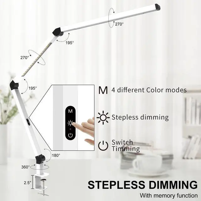 table clamp have built-in automatic delay-off function in the led lamp. It can be set 30 minutes before sleeping, then it will turn off automatically. It is not necessary to worry about getting out of the warm bed to turn off the light. The office table lamp supports power off memory function, it will return your last setting when you turn it on next time.