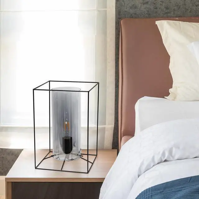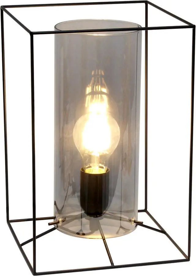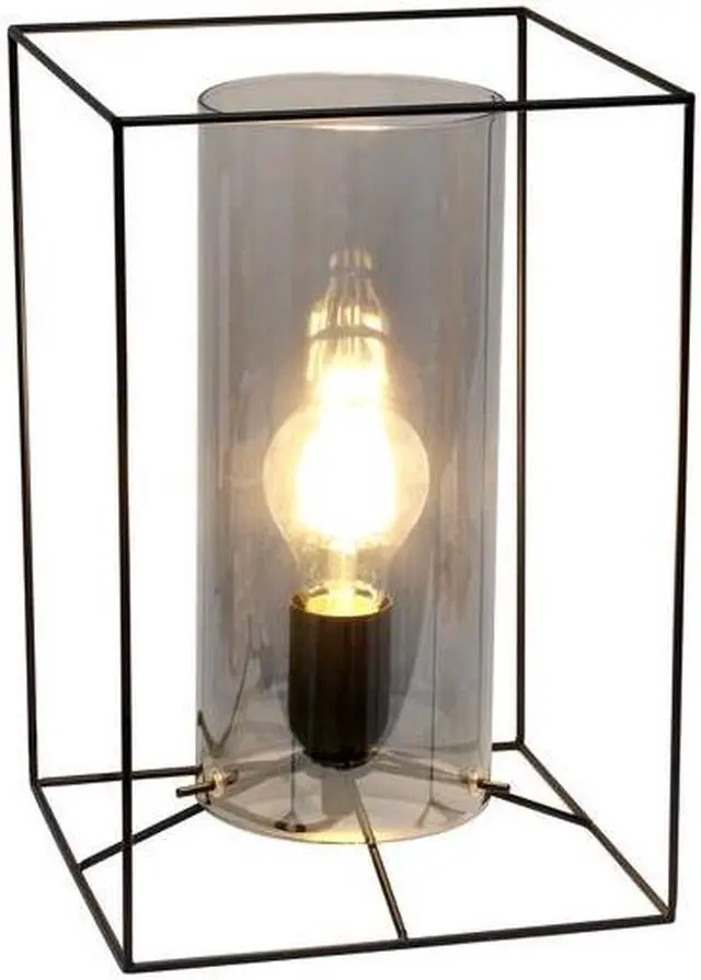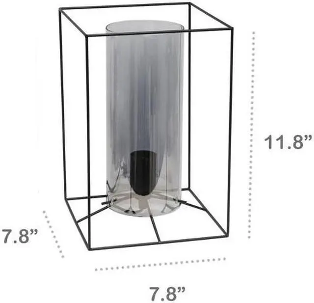 This table lamp features a black metal frame with a smokey glass shade that will illuminate any room in style! The simple, clean lines of the frame is complimented by the rounded cylinder shade offering a chic sophisticated look. Perfect for your living room, bedroom, office, apartment or college dorm!**HELPFUL TIP: To get the complete industrial look, we recommend using a decorative Edison/Vintage bulb (not included). **