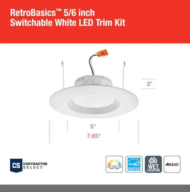 The 6-pack 5/6" RetroBasics LED Trim Kit provides the most economical solution for efficiently lighting a space using LED technology with virtually zero maintenance. Available in a smooth trim, the RetroBasics downlight covers an array of applications, providing a solution for every room of a home.