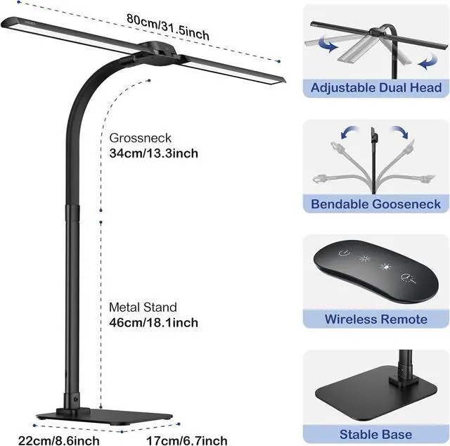 POWERFUL AND SPACIOUS LIGHTING: Illuminate your entire workspace with ease thanks to the desk lamp' s impressive 24W output and lengthy 31.5 -inch size, providing ample brightness and wide coverage.