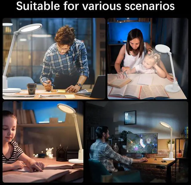 Ultra Bright: Our desk lamps for home office features a 6-inch diameter light source with 1000 LM of brightness, offering a larger and wider illumination range compared to other desk light. It evenly lights up tables to 51 inches wide, providing ample and comfortable lighting ideal for reading, studying, working, crafting, gaming. A high Color Rendering Index (CRI > 95) ensures better color accuracy and is gentle on the eyes, preventing eye fatigue even with prolonged use.