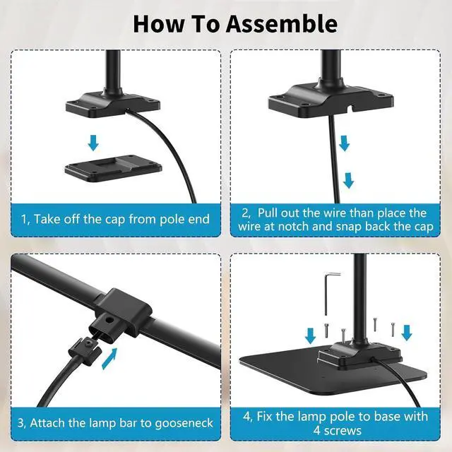 Stable Base fits for all tabletopThis tall desk lamp comes with metal heavy base allows it stand on any kind of tabletop firmly and it takes up little desk space, ideal for dual monitors, cured wide monitors or L-shape multi tasks desk.
