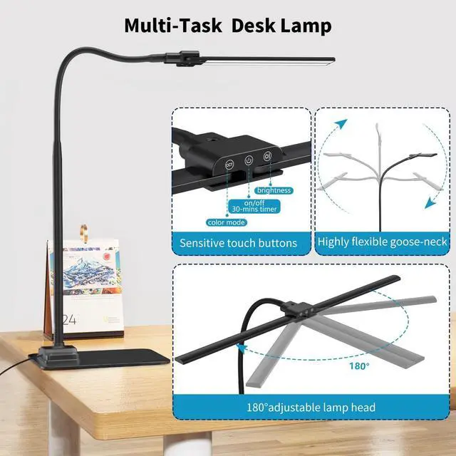 Double Head Desk LampsIt has ultra wide-spanning 27.8 -inche across when unfold that achieves the full desk coverage evenly, 180°adjustable LED lamp bars can be side lamp when the lamp heads arranged together for bright, targeted desk lighting. EASY TO SET UP following the THIRD image with assemble steps