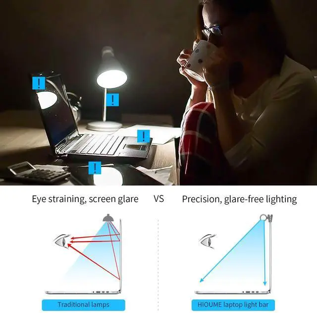 Anti-glare design and 90° rotation angle, ensure that only illuminates the desk and doesn’t shine on the screen, avoiding reflective glare.