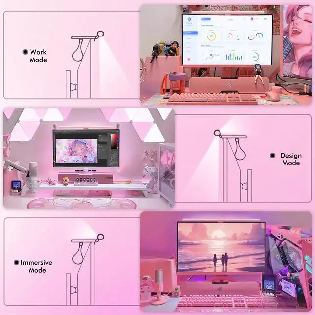 Pink monitor light bar features adjustable color temperature and brightness settings, allowing you to customize the lighting to suit your tasks and mood. Whether you‘re working late into the night or leisurely gaming, our desk lamp provides the ideal lighting experience for every moment.