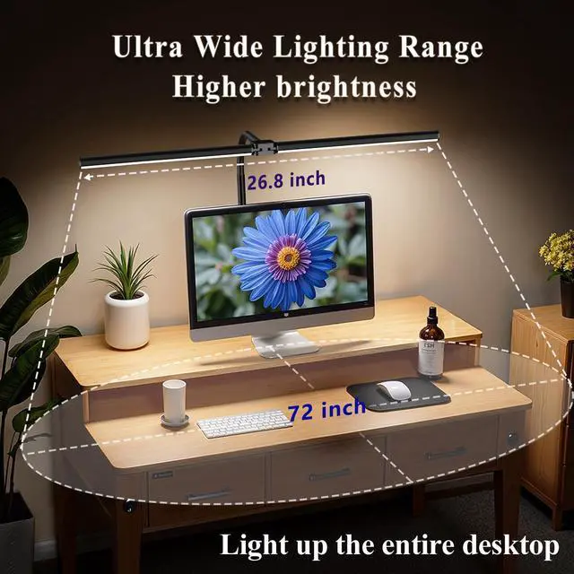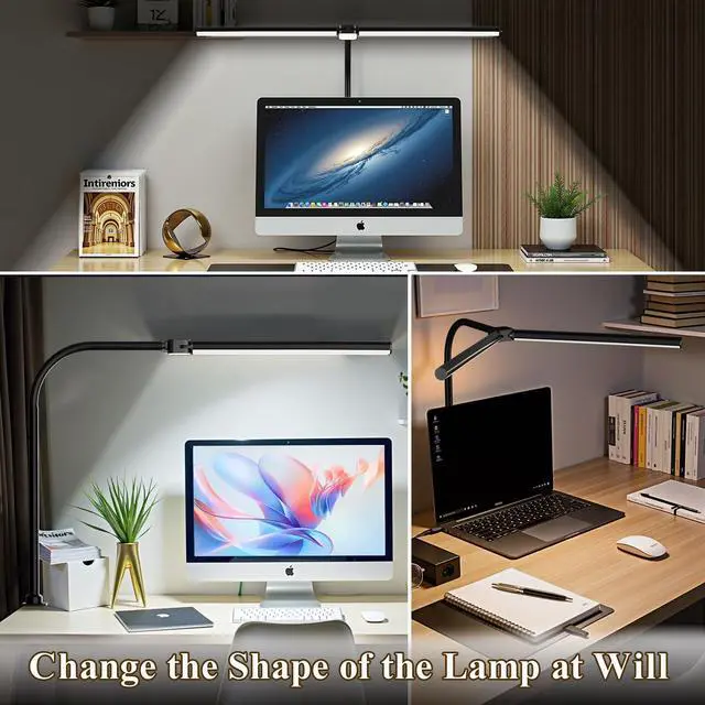 LED Desk Lamp for Home Office,Eye-Caring Desk Light with Reduced Blue Spectrum, Dual Screen Computer Monitor Table Light,30 Lighting Models,Adjustable Flexible Gooseneck Desk Lamp for Study