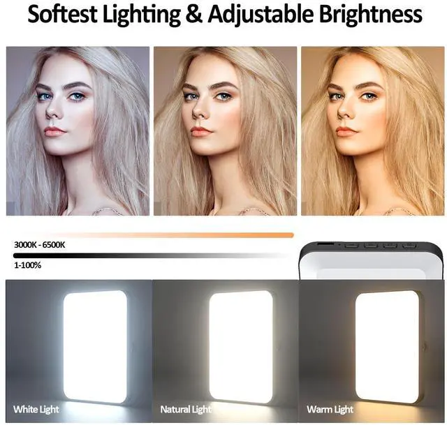 This video LED light is designed for multiple tasks that needs extra light source. You can use this video light for remote video conferences, online teaching/learning, video chat, live streaming, YouTube video shooting, TikTok, selfies, reading, makeup, handwork, night light, etc.