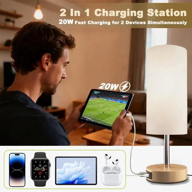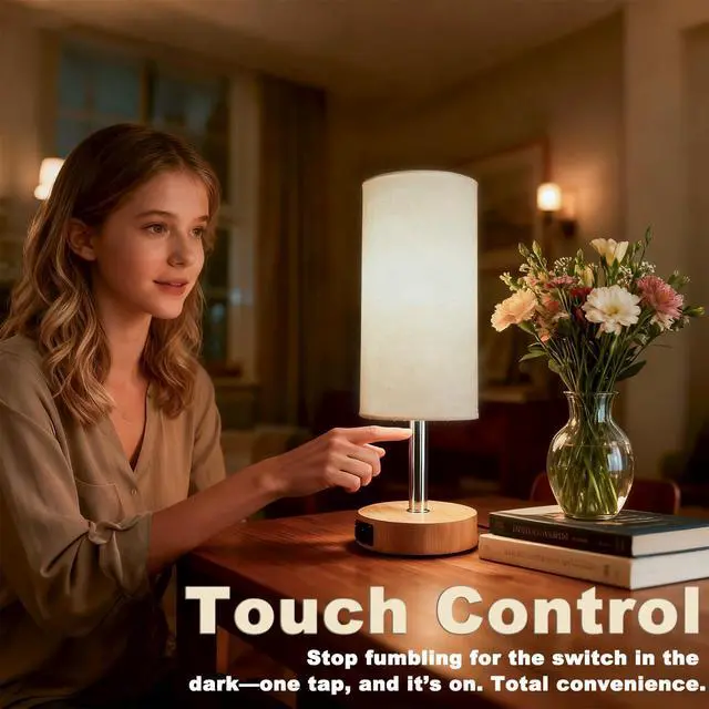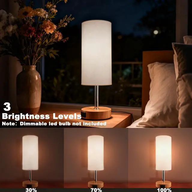 High-quality materials and thoughtful design the white, light-diffusing fabric shade protects the eyes and creates a warm, relaxing atmosphere. The sturdy natural wood base adds an elegant accent to your decor. With its combination of lighting, charging function and decorative design, this table lamp is the ideal choice for bedrooms, living rooms and more.