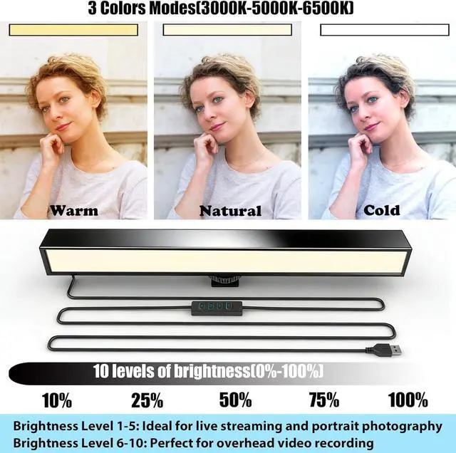 USB Powered & ConvenientPlug into any USB port on your laptop, PC, or power bank. No batteries needed never worry about running out of power. Energy-efficient LED deliver bright, steady light for extended working or streaming sessions