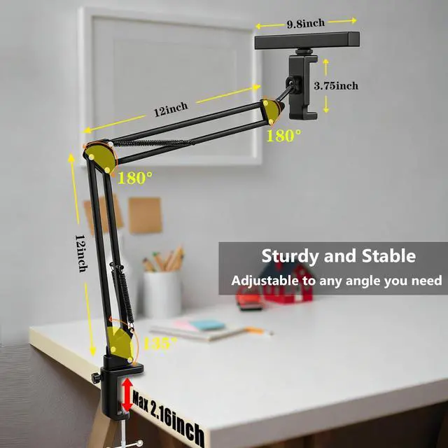 Sturdy & Flexible Desk LightMade of premium alloy and reinforced metal arm for durability. Double-spring support holds steady at any angle. Upgraded clamp fits desks up to 2.16 inches thick while saving space. Non-slip and secure, easy to adjust