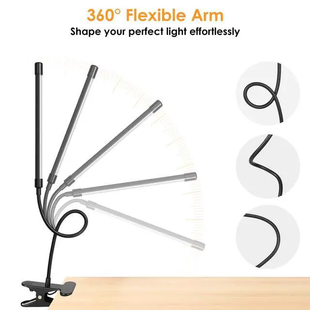 360° Flexible Gooseneck & Stable Clip: Designed for home office and multi-task setups, our clamp desk lamp boards flexible long arms, allowing full-angle adjustment. Additionally, the sturdy metal clamp securely mounts to desk edges up to 1.38 thick, with the protective silicone pad prevents surface damage, saving valuable workspace and improving lighting efficiency.