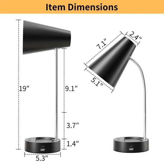 Desk Lamp with USB Charging Port ,Type C port,touch control heat dissipation design