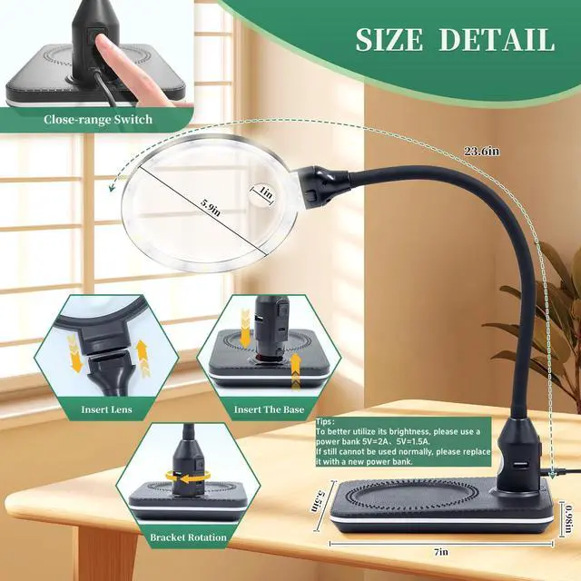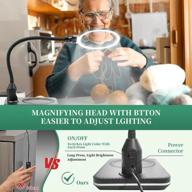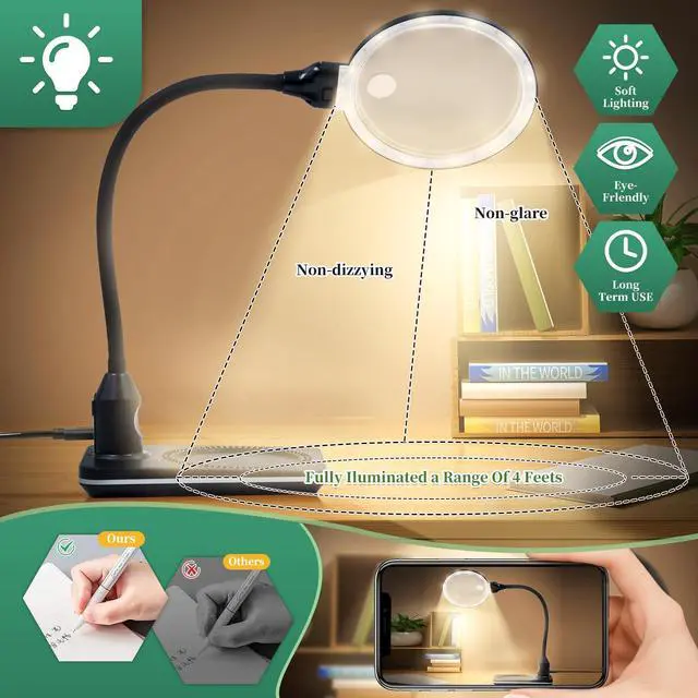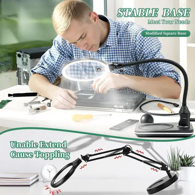 - Flexible Gooseneck: The magnifying glass with lights can be easily adjusted to various angles and directions.