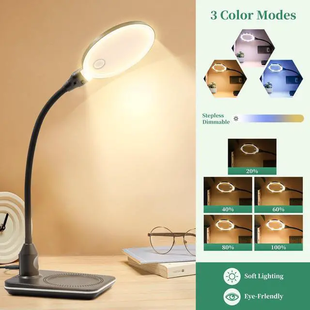 - 2-in-1 Desk Lamp & Clamp Light: Functions as both a desk lamp and clip-on lamp, suitable for various surfaces and close work.