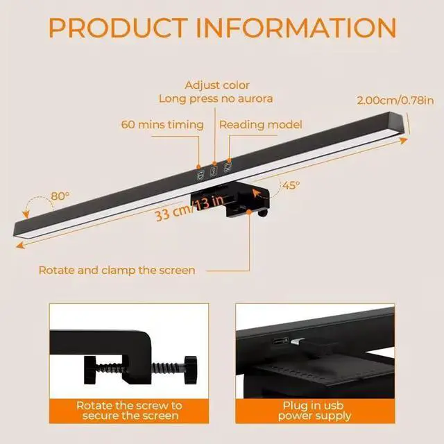 Easy to Install & Wide Range of Use: The patented clip-on design enables it to be installed in seconds! Without any tools, just clip the desk lamp on screen. Flexible design, suitable for screen thicknesses from 0.12 to 2.2 (0.3cm TO 5cm). It's convenient to use.