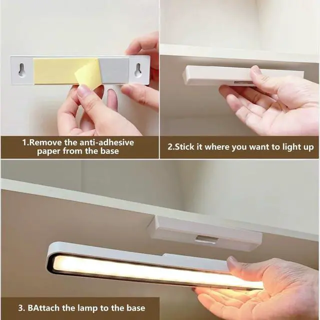 Desk Light Bar 16.5 in Magnetic Rechargeable LED Light Bar, 3000K, 4500K, 6000K Color Temperature Battery Powered Under Cabinet Lighting for Desk, Home Office, Shelf, Reading